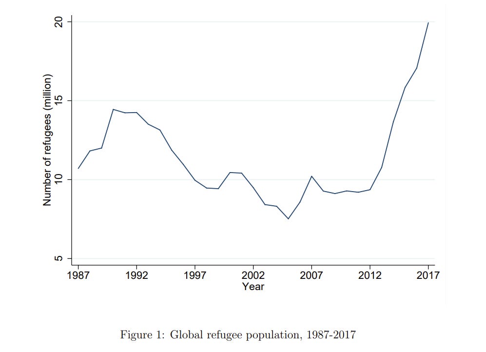 That’s not the world we live in any more. The number of refugees is higher, and a larger proportion of them make their way to rich countries.
