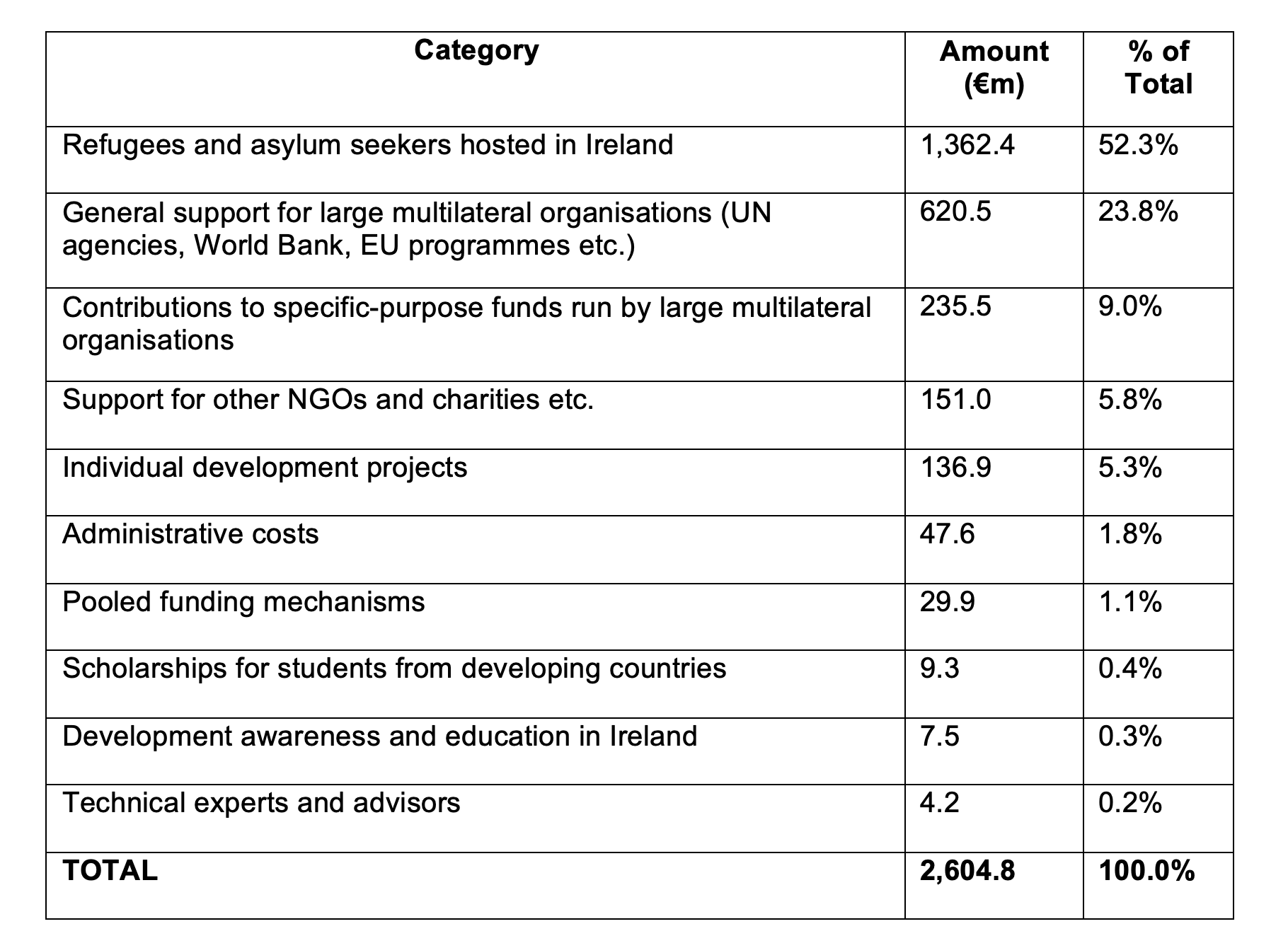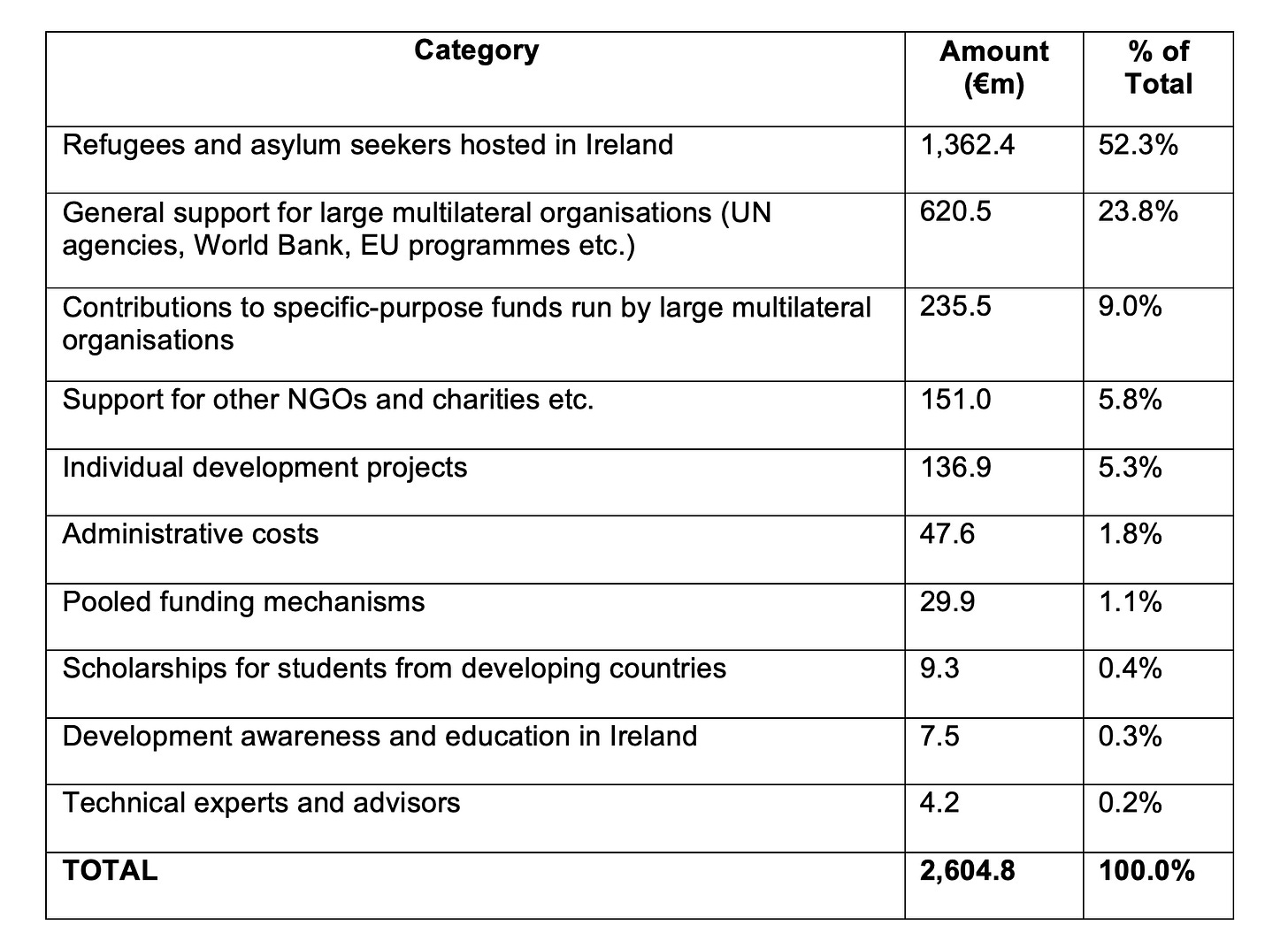By far the biggest category of ‘foreign aid’ is spending on refugees and asylum seekers who are already living in Ireland. Refugee spending alone is more than half of all of ‘foreign aid’ spending!